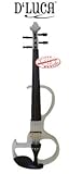 D'LUCA ELECTRIC WHITE VIOLIN ALL EBONY, EVM-W1 The D'Luca ebony electric violin is a unique instrument that has all the tone, playability, and features that musician's want. This beautiful, full-size instrument features a solid Spruce top, Maple back and sides, Ebony pegs, fingerboard, tailpiece and chinrest, and it has a special-design piezo electric bridge. The D'Luca electric violin comes as a complete outfit that includes a Lightweight case, bow, and rosin. Also Cable and Headphone are included. Features: Solid Spruce top, Maple back and sides, Ebony pegs, Ebony fingerboard, Ebony tailpiece Ebony chinrest, Special-design piezo electric bridge. Includes: Durable case with backpack straps & zipper pocket Ebony bow with mother of pearl inlay & unbleached genuine Mongolian horsehair Quality rosin cake Headphone and Instrument cable