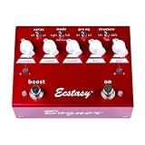 Take command of your tone with the Bogner Ecstasy Red overdrive/distortion pedal. Modeled after the red channel of the famed Bogner Ecstasy amp, this pedal delivers everything from vintage overdrive to aggressive high-gain tones that you can tweak to perfection. A 3-band EQ lets you dial in your perfect tone, but a set of four switches takes your sound even further. A Variac switch that brings the "dropped voltage" dynamic compression of an underpowered amp (think Brown sound), a Mode switch that lets you choose between three classic EQ curves, a presence and harmonics shaping Pre-EQ switch, and a footswitchable boost. The boost has independent volume and gain controls so you can send your sound over the edge for killer solos. Add an entire rock amp to your rig with the Bogner Ecstasy Red pedal.