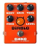 Product Description The Diablo is a versatile low to medium gain overdrive with an exceptionally dynamic response. It preserves the character of your instruments and is very sensitive to your playing technique. Thanks to the effective and musical controls, the Diablo works equally well with any kind of guitar, amp or playing style. People use it for so many different sounds, you would hardly believe that they use the same pedal. Besides the usual Gain, Tone and Level knobs, the Diablo has some more interesting controls: FEED affects the amount of bass in the input signal. You know the problem: an overdrive sound gets muddy rapidly if the input signal is too bass heavy (thatÕs why the treble booster was invented). With the FEED control you can make even the fattest neck humbucker sound clear and transparent or beef up weak pickups a little. The BODY control takes effect on mids and compression. Another important feature is the HEADROOM SWITCH. Set to the "HI" position, an internal electronic voltage doubler is activated Ð the Diablo runs on 18 Volts from a regular 9 V battery or power supply. The higher voltage gives more dynamic range, more headroom and tighter bass Ð just try it! The Diablo comes in two versions: the regular one and the Diablo Gain+ with two footswitchable gain settings (sounds are the same in both versions).
