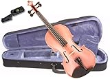 This violin kit comes complete with violin, bow, case, rosin, and a free violin tuner worth . Violin comes with a metal tailpiece with 4 tuners - making tuning easy. The bow comes with real horsehair providing solid playability and sound volume. Violin comes with bridge already setup and ready to play. Violin top is hand carved solid spruce and violin back is hand carve solid maple. The violin also comes with real inlaid purfling on both the violin top and back. Fingerboard, chinrest and tuning pegs are made out of hardwood. Bow comes with this violin kit is made out of round stick and Mongolian horsehair with rosewood frog. The kit also includes 1 rosin. The violin case is light weight made out of foam and covered with nylon. The well fitted interior design protects violin from excessive movement while in transit. Velcro neck strap holds the violin securely from movement. A matching blanket is included to further protect the violin against loose bows and items in the case. There are 2 bow holders in the case. Violin neck/head area is large enough to hold shoulder rest. There is an accessory compartment for storing rosin, strings, etc. (3" Width by 3-1/2" Length by 2-1/2" Depth). Case has outside pocket for holding music and accessories. 1 adjustable shoulder strap is included allowing carrying the case over the shoulder - taking violin to lesson, school or orchestra practice is made easy. The free tuner included is to help you tune the violin. The tuner can tune all 4 strings. The tuner is also a guitar tuner and a chromatic tuner all in one. This violin model is available in smaller sizes. Other colors are also available. Here is a quick guide to determine the right size violin to buy by age. 4/4 Full Size (11 years old to adult), 3/4 size (10-11 years old), 1/2 size (8-9 years old), 1/4 size (6-7 years old), 1/8 size (5 years old), 1/10 size (4 years old), 1/16 size (3 and half years old), 1/32 size (3 and younger).